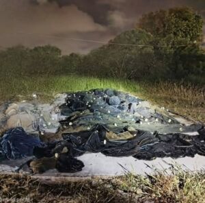 Durante a varredura nas regiões da orla da Henrique Pancada e do Bosque Silveira, os policiais localizaram e recolheram cerca de 1.800 metros de redes de pesca do tipo “saco”, além de 32 baterias utilizadas na atividade ilícita. Aproximadamente 28 quilos de camarão foram apreendidos e devolvidos imediatamente ao habitat natural.
