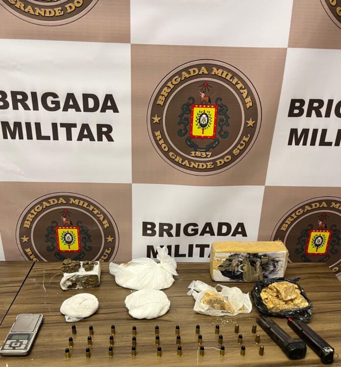 Na ação, os policiais apreenderam três porções de crack, totalizando cerca de 1,5 quilo, uma porção de cocaína, uma porção de maconha, 30 munições calibre .380, dois carregadores de pistola, uma balança de precisão e um veículo.
