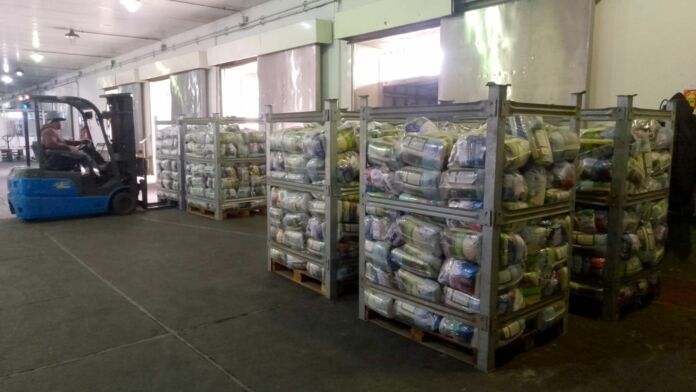 No total, serão entregues mil cestas básicas, cada uma com 25 quilos. Os kits são compostos por arroz, feijão carioca, farinha de trigo, farinha de milho, leite em pó integral, macarrão, óleo de soja, açúcar cristal e charque. O carregamento saiu da Unidade Armazenadora da Conab, em Canoas.