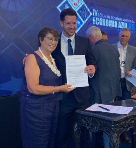 Durante o evento, um dos momentos de destaque foi a assinatura de um protocolo de intenções entre Rio Grande e a cidade portuguesa de Peniche, reconhecida por sua atuação na economia do mar. A prefeita Darlene Pereira ressaltou a identificação entre os municípios e o potencial da parceria. “O que foi muito importante da gente ver é o quanto nós temos em comum e poder mostrar o quanto a nossa cidade tem este potencial da economia com foco nas águas”, afirmou.