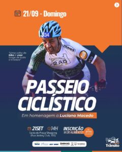 O momento mais simbólico será o Passeio Ciclístico em memória de Luciano Macedo, no domingo (21). A concentração será às 14h no estacionamento do Praça Rio Grande Shopping, com largada às 15h. As inscrições devem ser feitas previamente por formulário online ou no local, mediante entrega de 1 kg de alimento não perecível. Os participantes concorrerão ao sorteio de uma bicicleta.